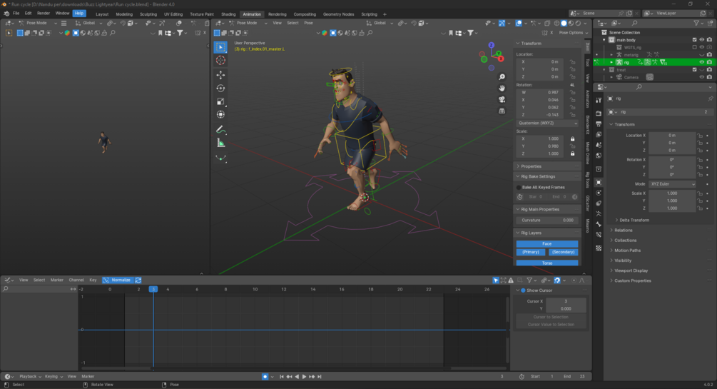 - Easy-to-use rig: Control Buzz's every move with intuitive controls for facial expressions, posing, and action. (Rigify Rig)
